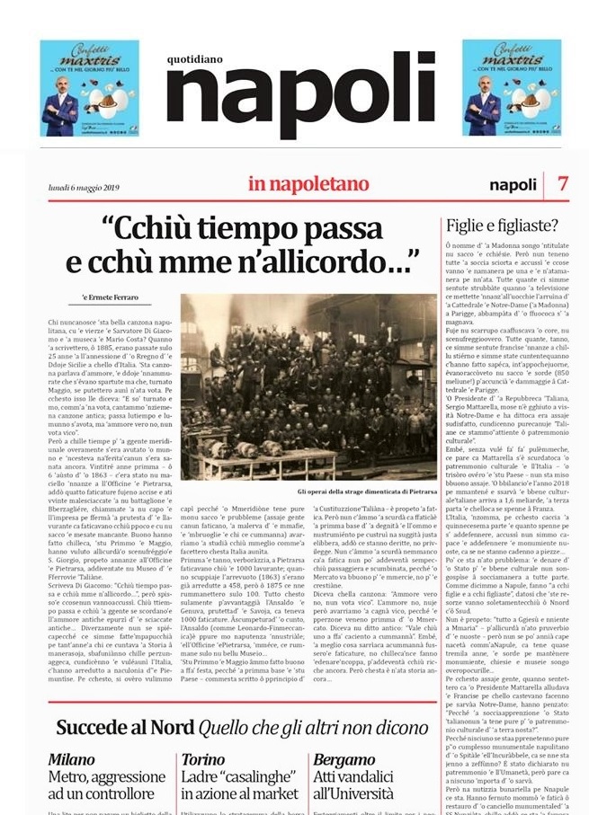 L’episodio più grave che ha sconvolto i Napolitani, purtroppo già abituati a questi atti si follia urbana, è stata l’ennesima sparatoria in mezzo alla folla di una popolare piazza, nella quale è rimasta tragicamente coinvolta un’innocente bambina che passeggiava con sua nonna ed ora versa in gravi condizioni in ospedale pediatrico. La reazione della gente è stata più immediata ed energica del solito, segno che il peso di una camorra senza limiti e scrupoli è diventato ormai intollerabile. Ma, oltre alla ripresa dei regolamenti di conti fra criminali ed alle ‘stese’ delle bande di giovani delinquenti, ci sono stati anche altri episodi che hanno lasciato sconcertato chi vive a Napoli e deve già fare i conti con l’ordinaria follia del traffico, con trasporti pubblici carenti, coll’inquinamento dell’aria e col caos dell’abusivismo, a vari livelli e in vari ambiti.